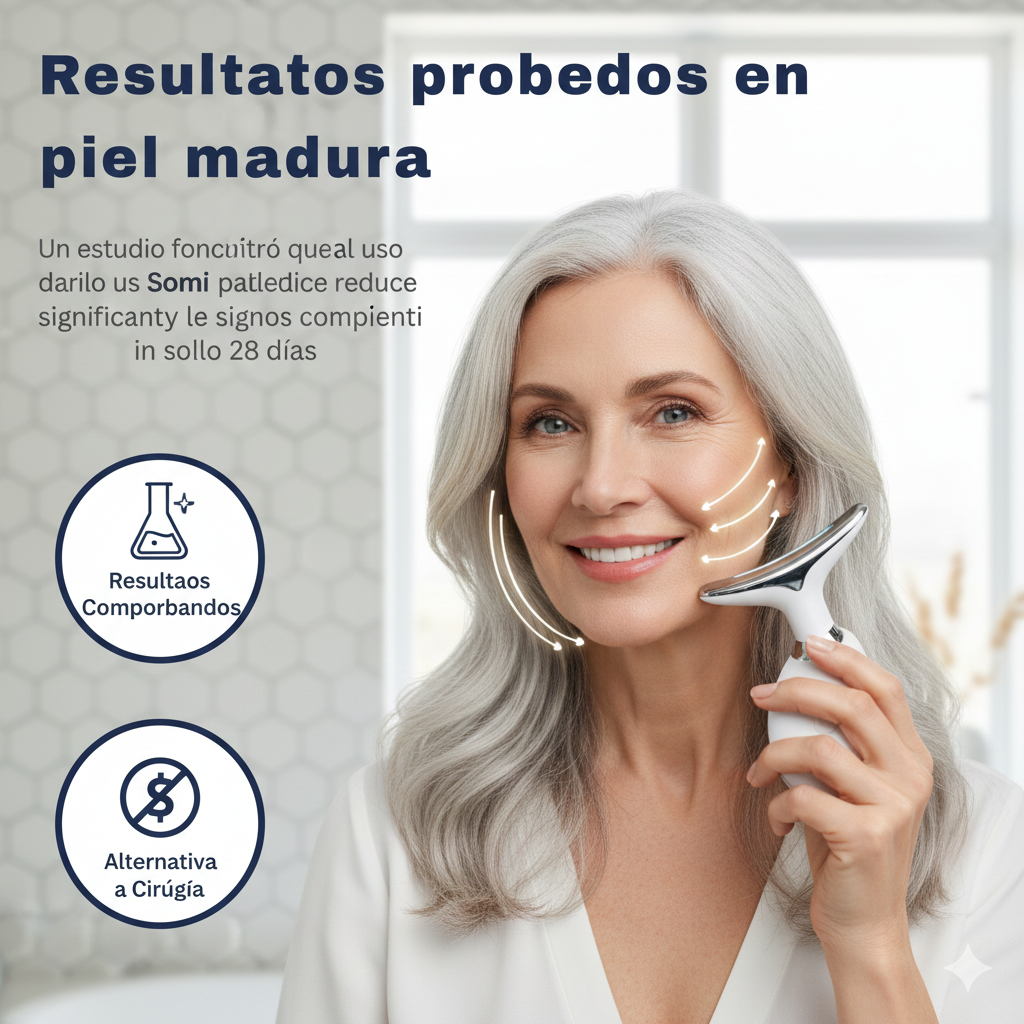 LumiSkin Pro combina 7 terapias de luz LED para revitalizar tu rostro sin esfuerzo.